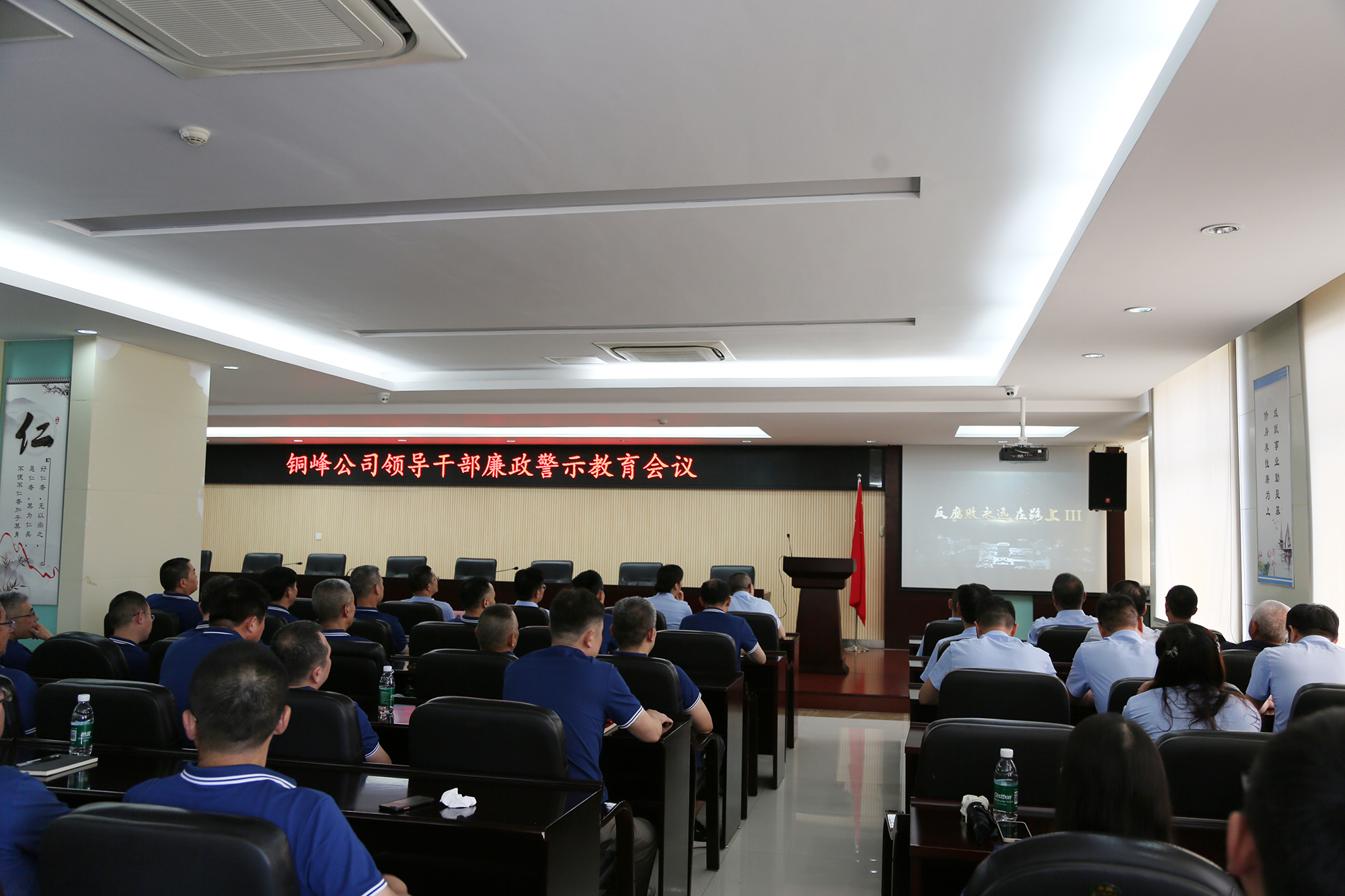 為深入推進(jìn)“一把手”、年輕干部、新提拔干部、關(guān)鍵崗位干部等四類(lèi)重點(diǎn)群體的學(xué)習(xí)教育工作,進(jìn)一步加強(qiáng)黨風(fēng)廉政建設(shè),7月4日下午,公司在辦公大樓二樓職教室召開(kāi)領(lǐng)導(dǎo)干部廉政警示教育會(huì)議。公司黨政領(lǐng)導(dǎo)班子全體成員,各黨(總)支部書(shū)記,各單位、部門(mén)負(fù)責(zé)人,機(jī)關(guān)職能部門(mén)主管和分(子)公司部門(mén)經(jīng)理、車(chē)間主任及以上人員共計(jì)100余人參加會(huì)議。