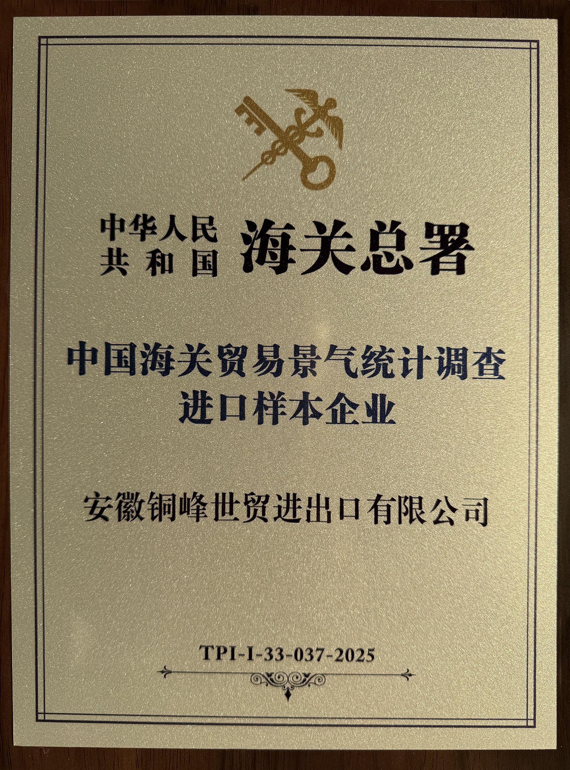 近日,公司全資子公司安徽銅峰世貿(mào)進出口有限公司憑借其卓越的進出口業(yè)績、規(guī)范嚴謹?shù)慕?jīng)營管理以及高質(zhì)量的統(tǒng)計申報數(shù)據(jù),成功獲得海關(guān)總署授予的“中國海關(guān)貿(mào)易景氣統(tǒng)計調(diào)查進口樣本企業(yè)”榮譽稱號。